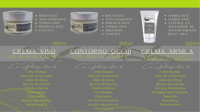L'olio di canapa ritarda il processo di invecchiamento della pelle, previene la desquamazione, la disidratazione e la secchezza, contiene vitamina E,A,B1,B2,PP,C.