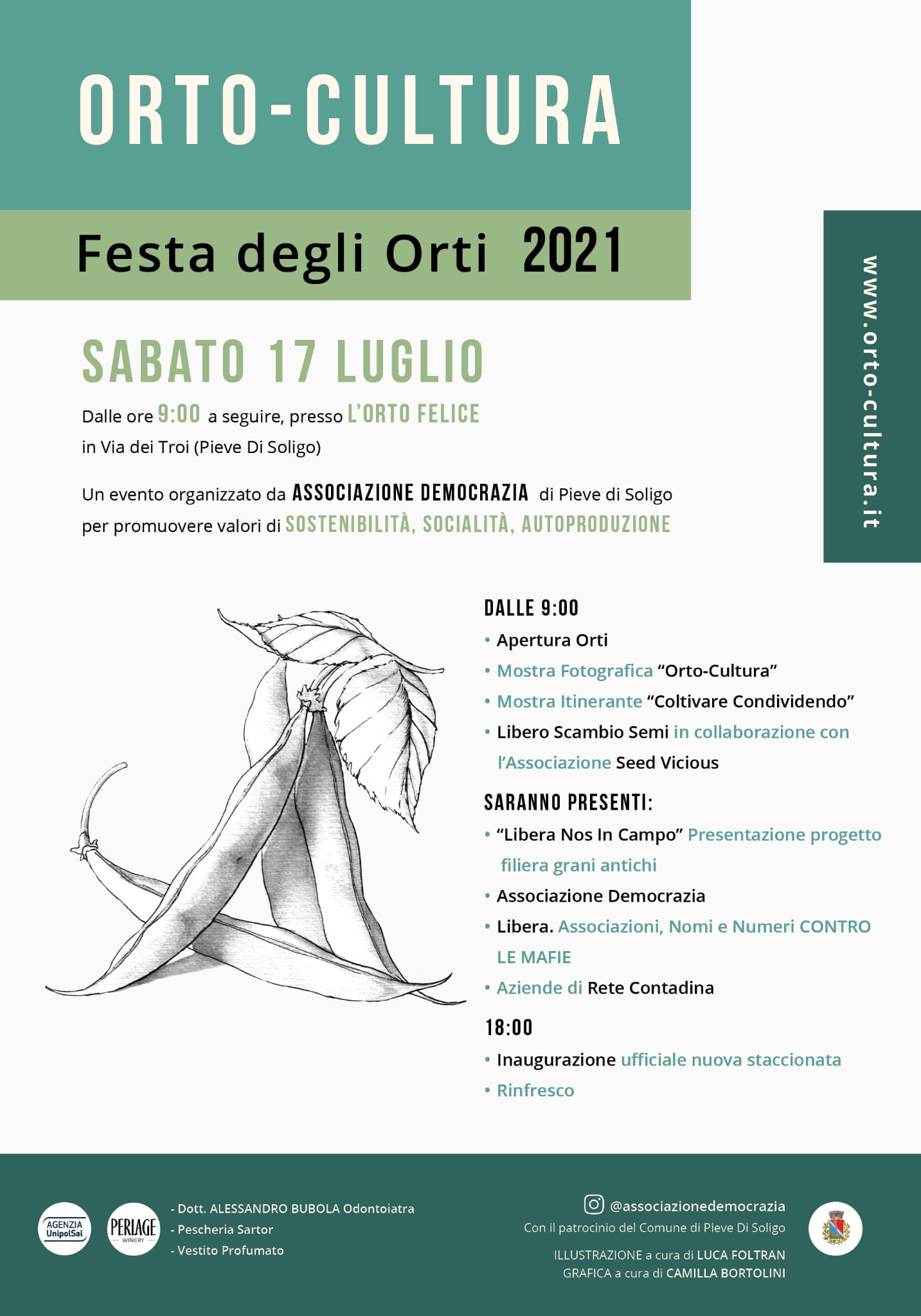 L’Associazione Democrazia è lieta di invitarvi SABATO 17 LUGLIO 2021 presso gli orti sociali - solidali “Orto Felice"