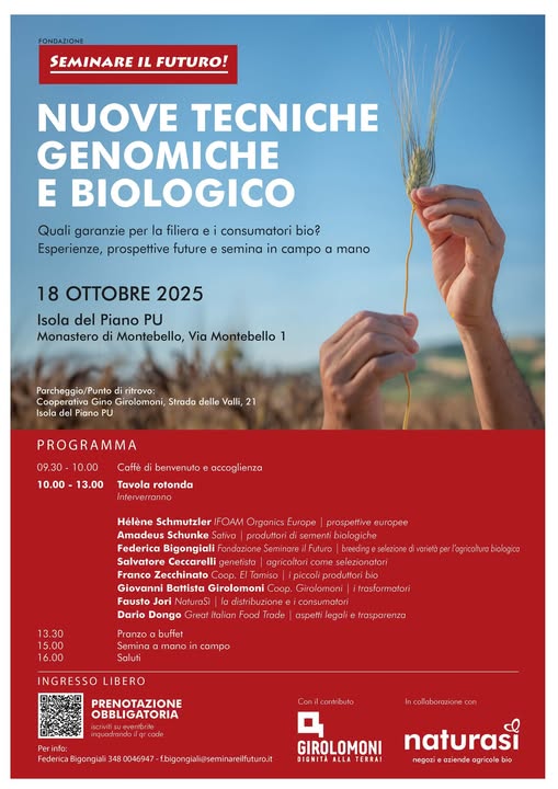 Evento organizzato da Fondazione SEMINARE IL FUTURO, con il contributo della COOPERATIVA GIROLOMONI e in collaborazione con NATURASI'.