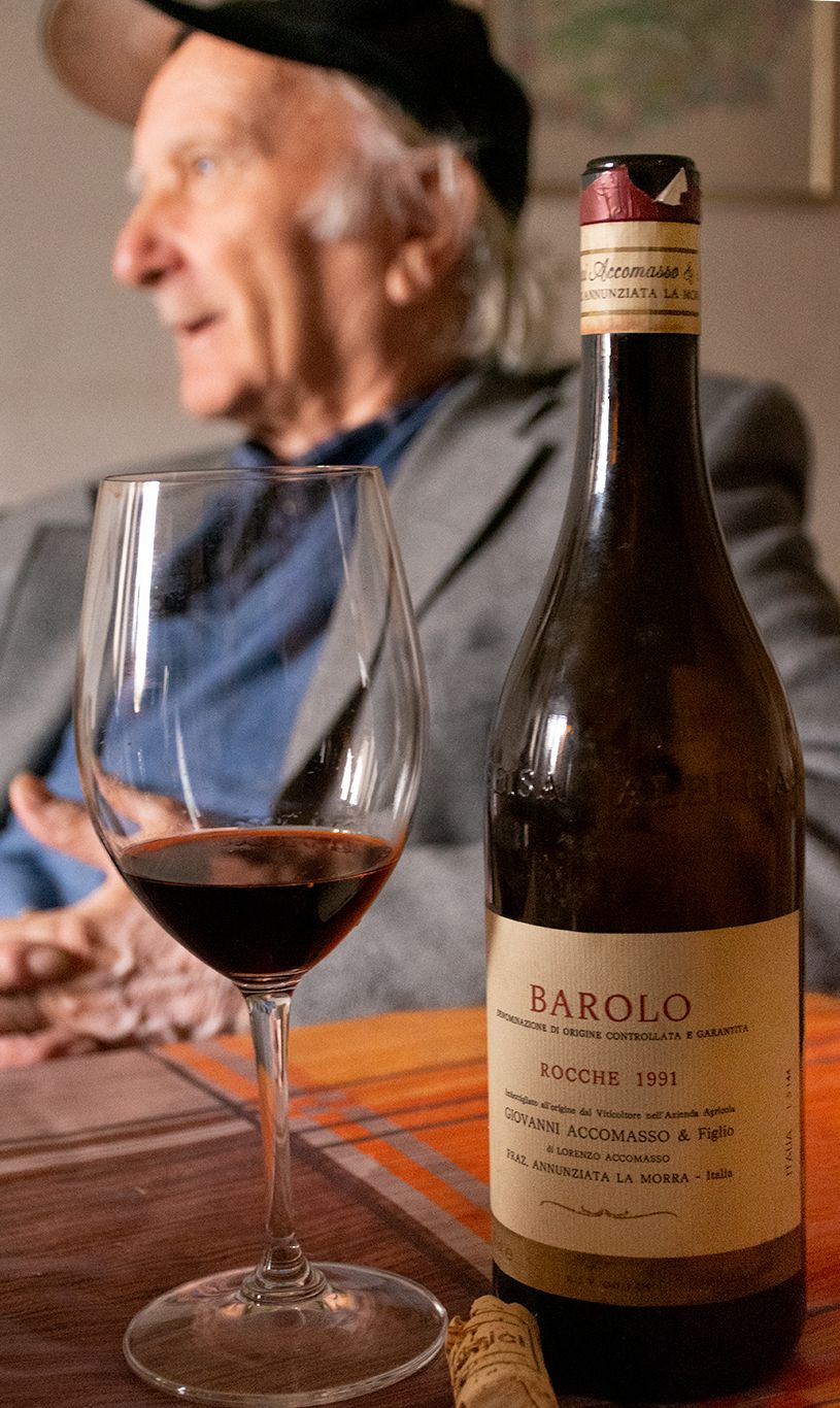 Fotografie di Antonella Pianca ©2017-2018 - “Omaggio alla Langa del Barolo” – Foto 1: Paesaggio di Langa verso La Morra – Foto 2: Uno storico produttore di Barolo, il comm. Accomasso, e il suo Vino – Foto 3: L’impianto di un nuovo vigneto a La Morra – Foto 4: Paesaggio di Langa