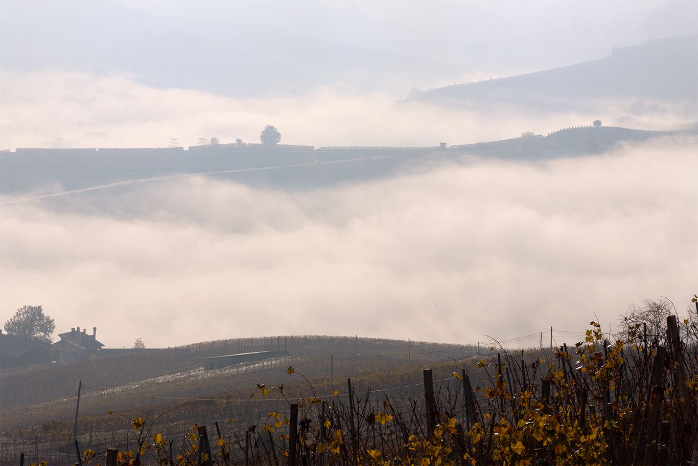 Più volte sono stata a visitare le Langhe, un territorio magnifico dove l’orizzonte non è mai chiuso. Una successione di colline, rocche, castelli, borghi. Un paesaggio vitato unico, con le piante di nebbiolo, barbera, dolcetto disposte in modo perpendicolare rispetto alla pendenza della collina. Nel principio dell’autunno il fascino delle prime nebbie crea dei piani di luce tridimensionali, in queste giornate sembra che la natura ti inviti ad un’intima riflessione e per me ogni volta è come ritornare a casa.